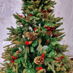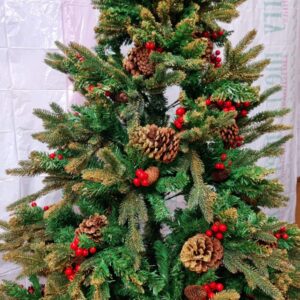 עץ אשוח מרשים עם אצטרובלים ודובדבנים 2.40 מטר